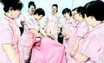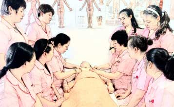 通過純手法穴位按摩為產(chǎn)婦解決各種乳房問題的專業(yè)護(hù)理人員。
